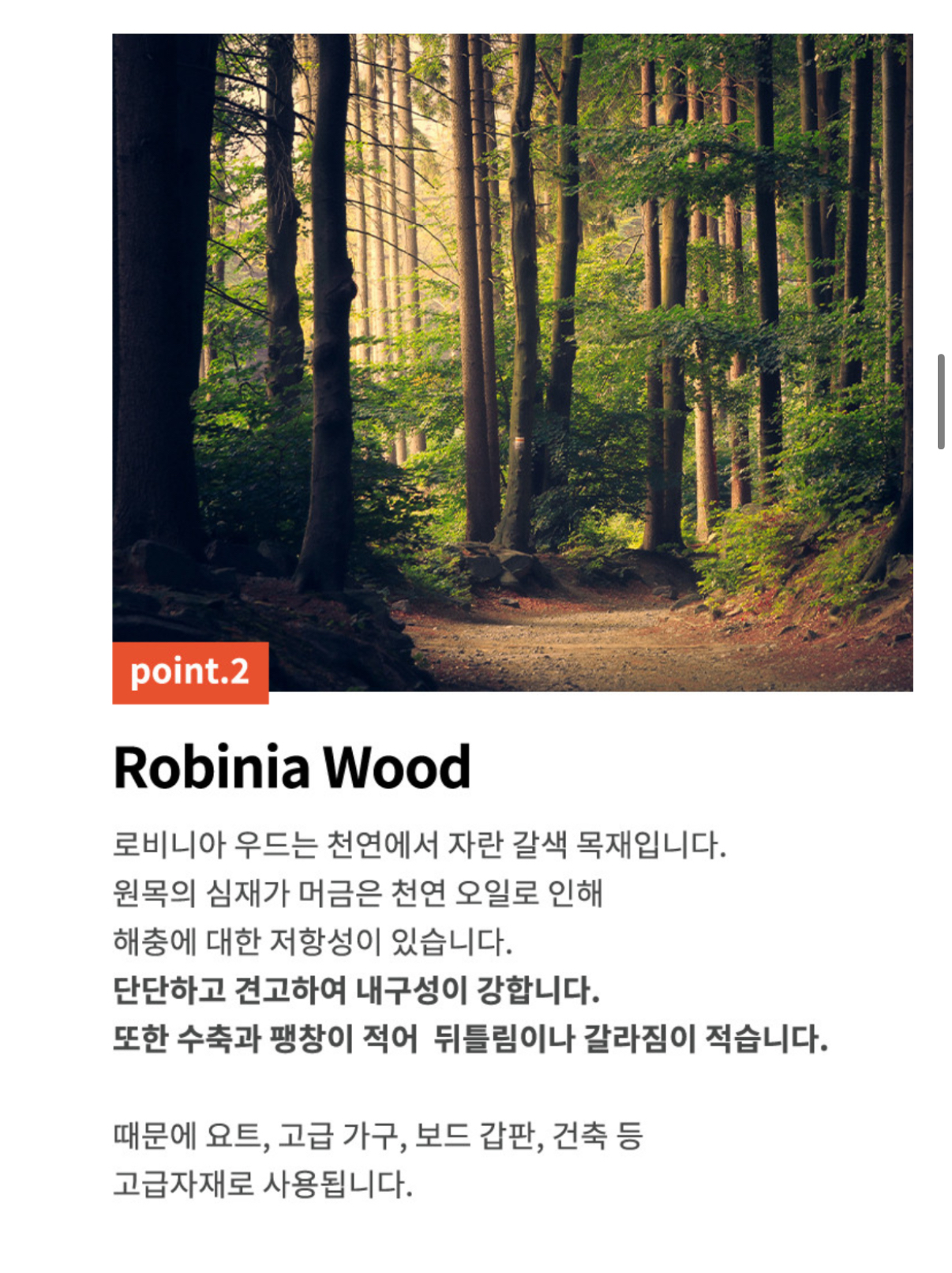 수종 및 제조국 : 로비니아 원목 / 중국