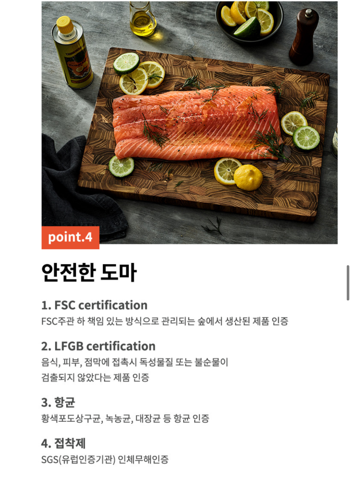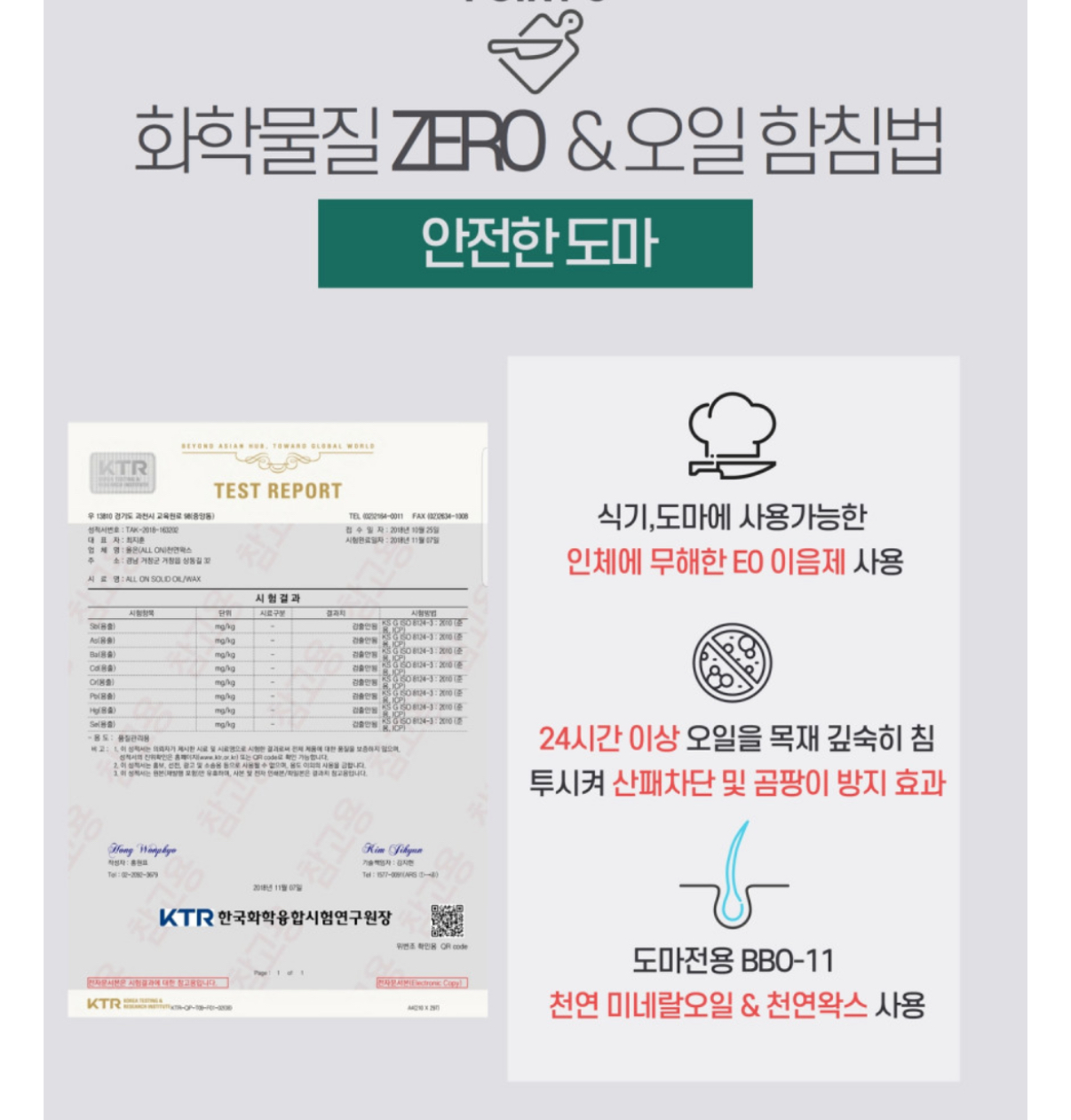 특징 - 오일 합침법으로 Jowat사 E0등급 이음제 & BBO-11 도마전용 천연 미네랄 오일 사용