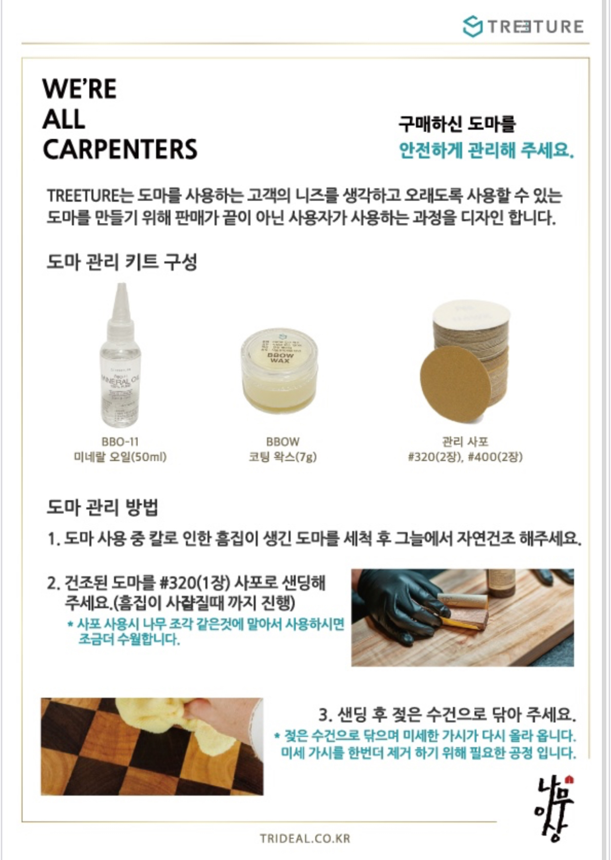 누보어 키트C 나무 도마 관리 오일 왁스 컨디셔너 원목 라탄 캄포 미네랄 오일링 전용 - 나무도마